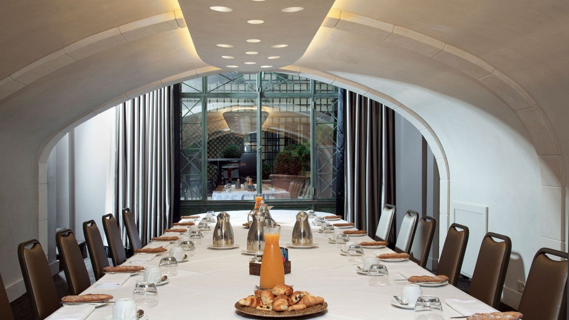 Ce salon au charme très parisien, au plafond voûté en pierres apparentes, offre la lumière du jour et un accès direct au patio. Ce salon de caractère est très apprécié pour les petits-déjeuners de travail, déjeuners et dîners. Équipé d’un écran LCD et de la technologie « Clickshare », il est pratique et confortable pour des réunions de 15 à 40 personnes.